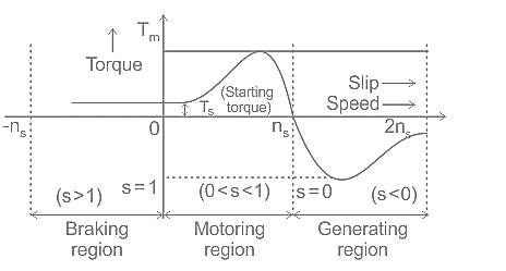 · This is because the slip becomes negative, which causes the torque, rotor current, and power to also become negative.