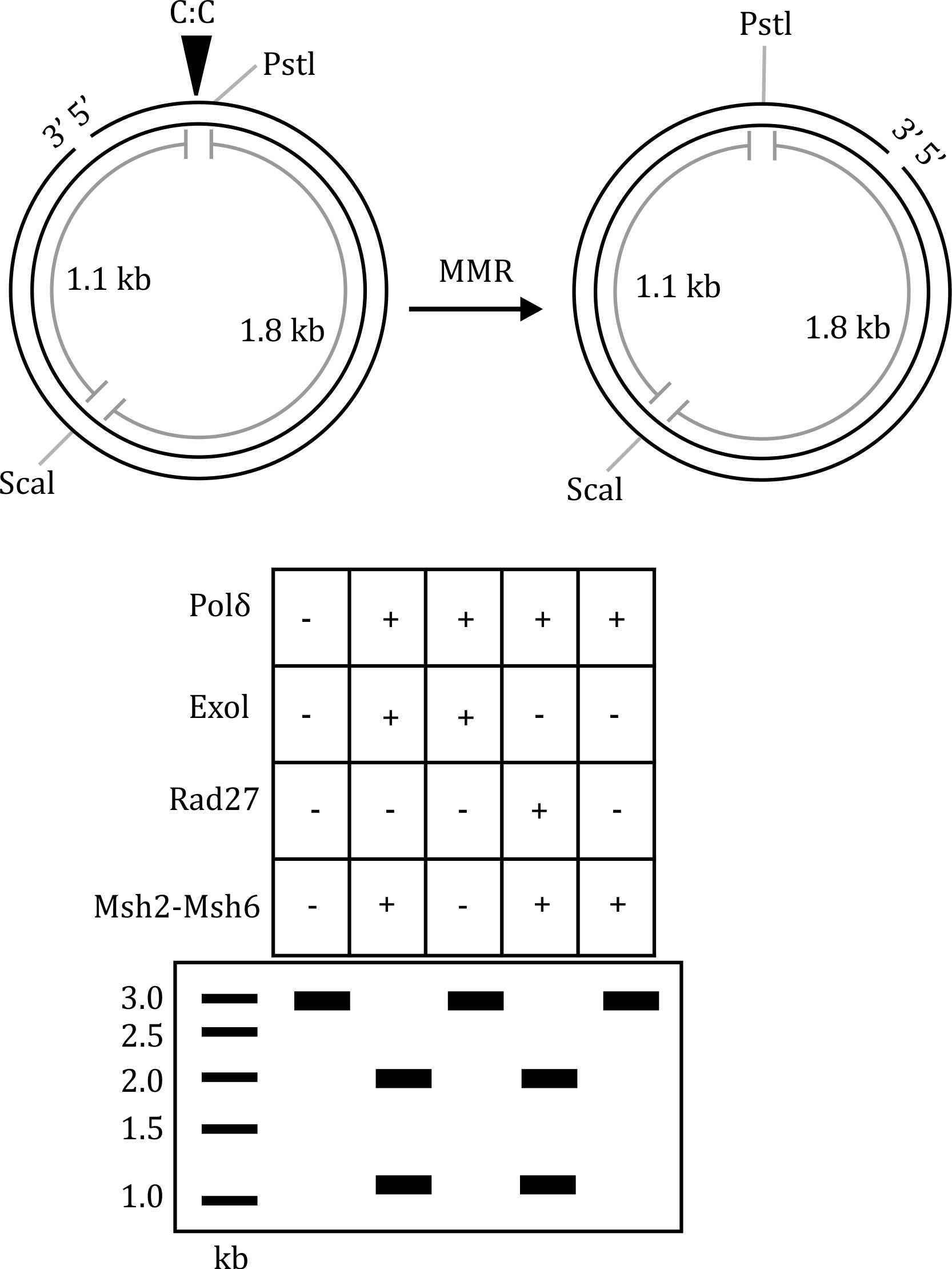 - However, when ExoI and Rad27 are absent, the repair is incomplete, suggesting that Polδ and Msh2-Msh6 alone are not sufficient for C:C mismatch repair.