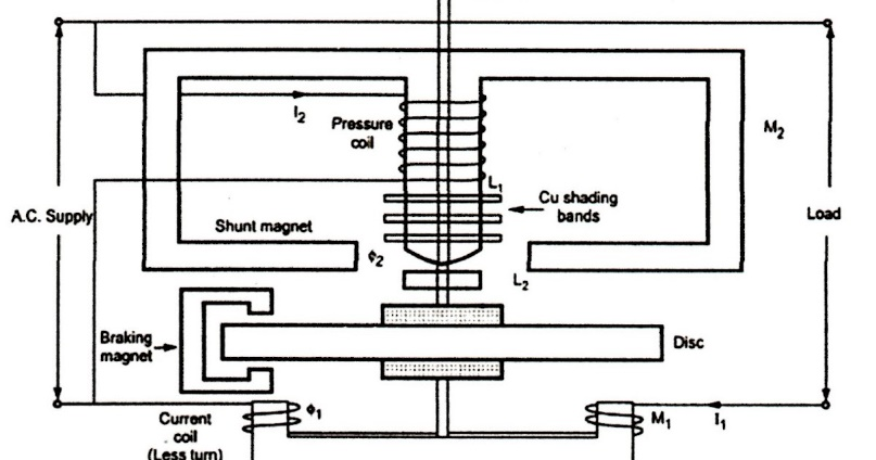 An energy meter, also known as a watt-hour meter, measures electrical energy consumption. Its construction involves several key components: a driving system with electromagnets, a rotating aluminum disc, a braking system, and a registering system. These components work together to translate electrical energy into a measurable rotation, which is then translated into a displayed energy reading.