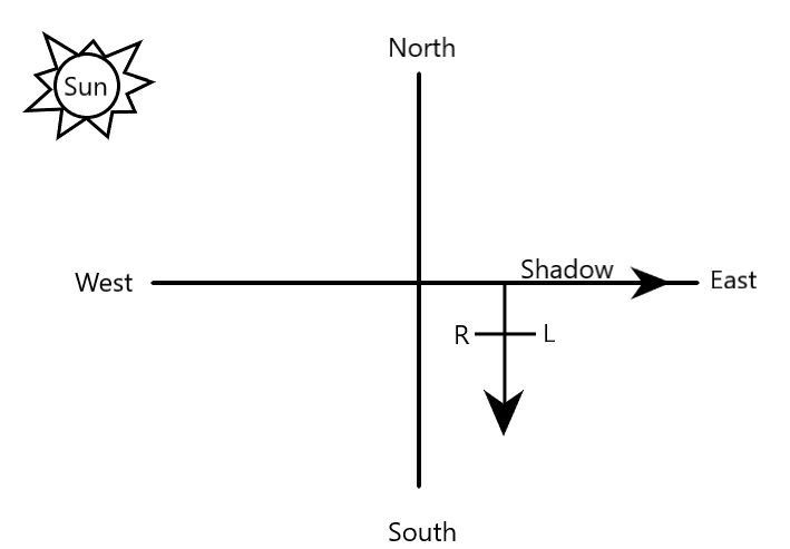 In the evening, a person was standing such that his shadow was to his left. in which direction was he facing?