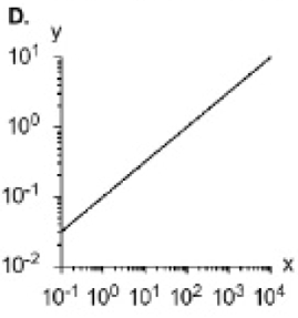 - Option D: This is a straight line on a log-log scale, which correctly represents the power-law relationship y = 10c.xm.