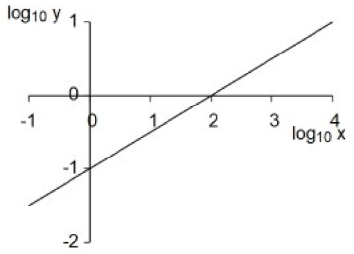 Given that the plot of log10(y) vs log10(x) is a straight line, this implies that: log10y = mlog10x+c