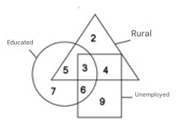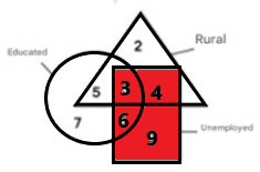 Given: In the following diagram, circle represents educated, triangle represents rural, rectangle represents unemployed.