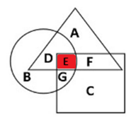 In the following diagram circle represents intelligent people, triangle represents creative people while square represents indicates lazy people then, who is intelligent and lazy but also a creative person?