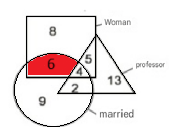 Given: In the following diagram circle represents married, triangle represents professor and square represents woman.