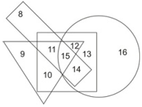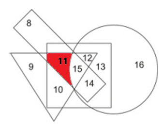 In the following diagram, if the circle represents rural people, rectangle represents honest people, square represents hardworking people and triangle represents educated people, then what will be the number of hardworking, educated, honest people in the figure who are not rural?