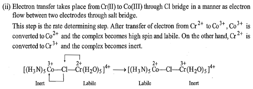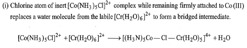 (2) The inert complex possesses atleast one ligand capable of bridging two metal ions to form the bridged intermediate and this bridged intermediate is called a precursor complex.