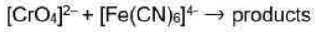Two species are involved: [CrO4]2- (chromate ion) and [Fe(CN)6]4- (hexacyanoferrate(II) ion). This reaction involves electron transfer, and it appears to be a redox reaction where one species loses electrons (oxidation) and the other gains electrons (reduction).