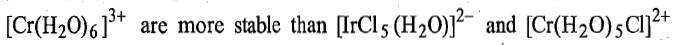 In the bridged complex or precursor complex, after electron transfer, the bond between the reduced metal ion and the bridge [Ir (III)-Cl] is stronger than the bond between the oxidised metal ion and the bridge [Cr(III)-Cl] and the latter will be broken before the former. Thus, in this reaction,