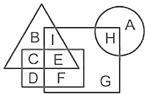 In the following figure, the triangle represents boxers, the square represents priests, the circle represents British and the rectangle represents men. Which set of letters represents men who are either boxers or priests?