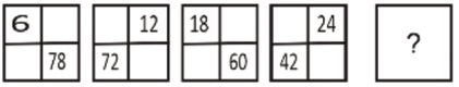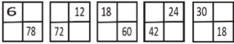 Logic: in the first row +6 is added. so next term in first row = 24 + 6 = 30