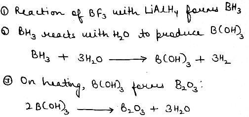 B₂O₃ is a stable oxide of boron widely used in glass and ceramics. BH₃ is a Lewis acid and exists in dimeric form as diborane (B₂H₆). B(OH)₃ is weakly acidic and has uses in buffer solutions and antiseptics.
