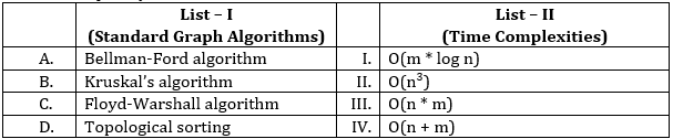 In question it is asked to match standard graph algorithms with their respective time complexities. Below is the detailed breakdown: