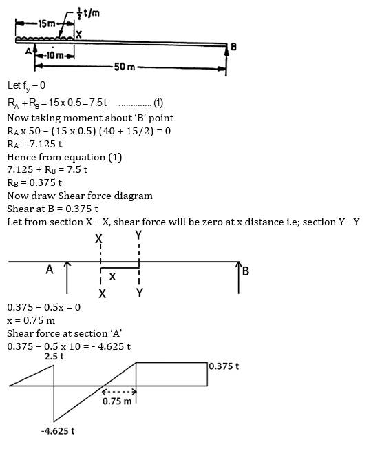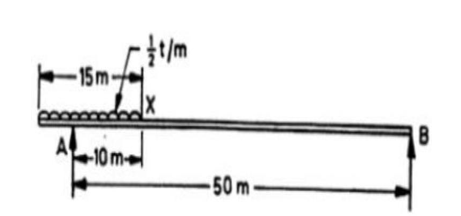 In the given figure, a UDL load of 0.5 T/m is applied on the beam. Find the maximum positive shear force.