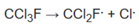 The reaction of the CFCs which is responsible for the depletion of ozone, is the photo-induced scission of a C-Cl bond: