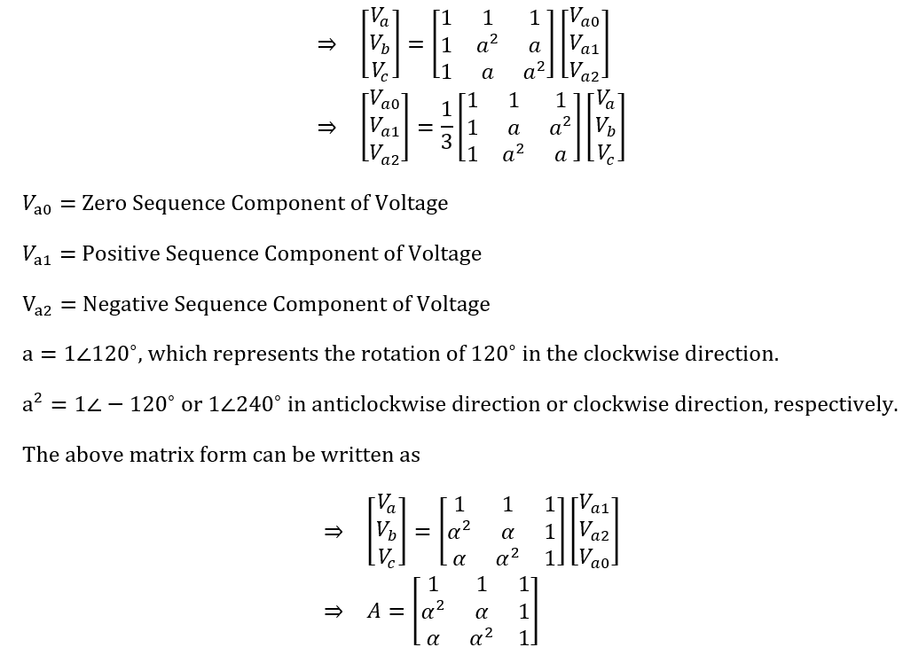 The relation between the line voltages in terms of the symmetrical components of voltages is given below.