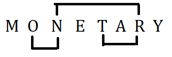 In the word ‘MONETARY’, how many pairs of the letters have the same number of letters between them (both forward and backward direction) as in the English alphabet?