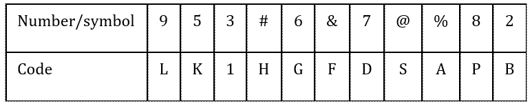 "If the first two elements are numbers and the last is a symbol, then interchange the codes for the second number and the last symbol."