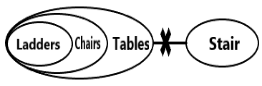 III. Some ladders are stairs.(Not follows, Since all ladders are inside the table set, and no table is a stair, it is impossible for any ladder to be a stair.)