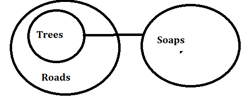 III. No road is soap (False, outer part of roads which is not in trees can me soaps so negative conclusion is wrong without no information)