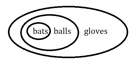 II. All bats are gloves.(True. All part of bats are in gloves)