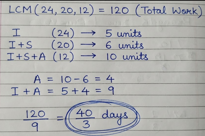 Isha + Smriti + Ashlesha can do the work in 12 days.
