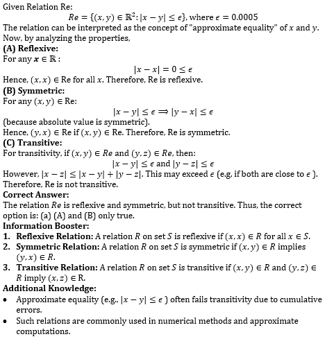 Let ∈ = 0.0005, and Let Re be the relation {(x, y) ∈ R2: |x - y| < ∈], Re could be interpreted as the relation approximately equal. Re is: