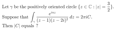 Let C be a positively oriented circle in the complex plane of radius 3 centered at the origin.