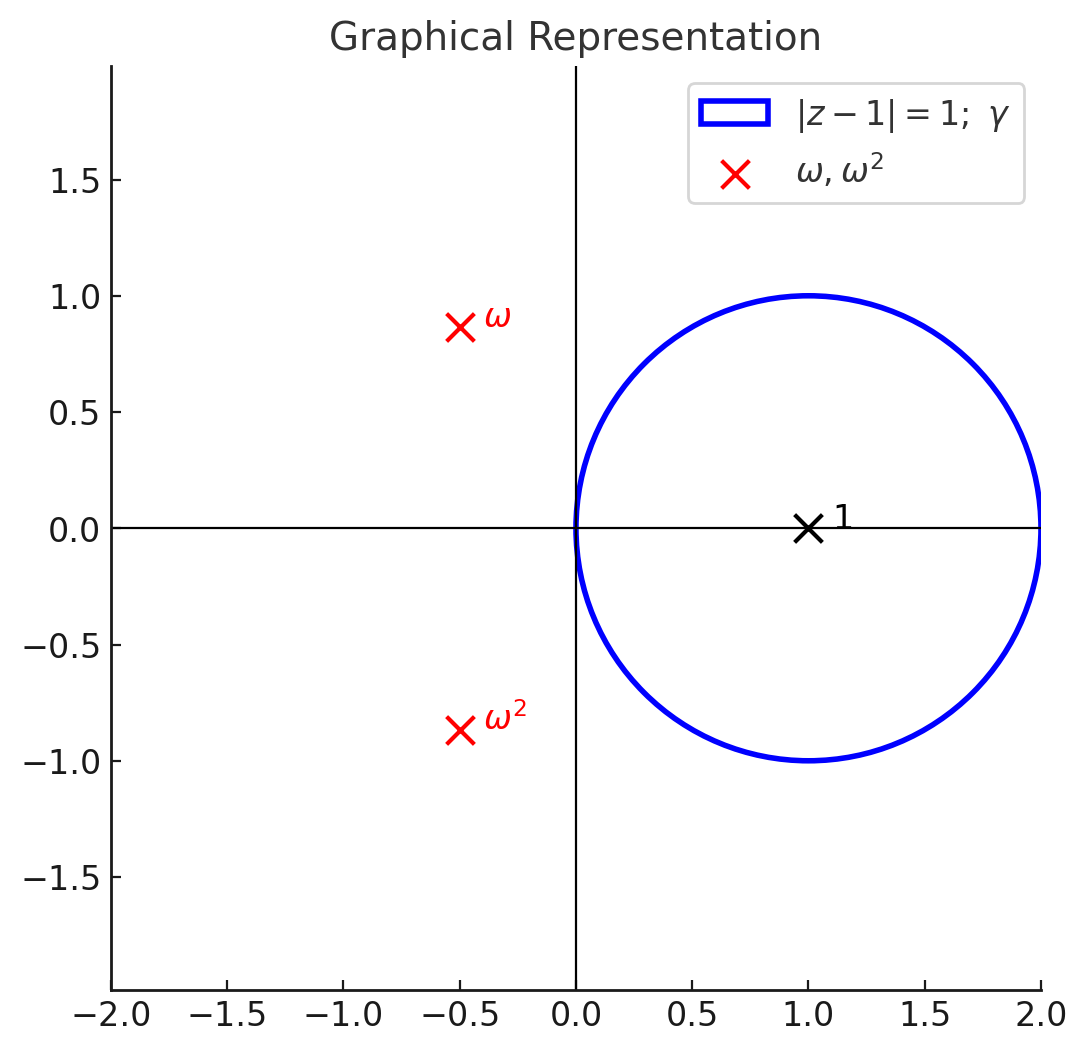 The equation : z3−1 , have 3 roots : 1,w,w2So,z3−11=(z−1)(z2+z+1)1=(z−1)(z−w)(z−w2)1.The diagram of given contour is :