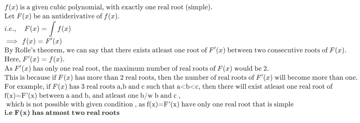 f(x) has exactly one real root and that root is simple.