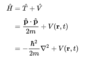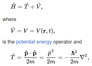By analogy with classical mechanics, the Hamiltonian is commonly expressed as the sum of operators corresponding to the kinetic and potential energies of a system in the form