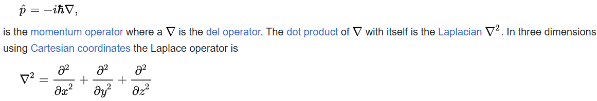 is the kinetic energy operator in which is the mass of the particle, the dot denotes the dot product of vectors, and