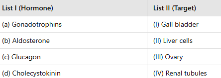 · (d) Cholecystokinin → Gall bladder (I) – Correct