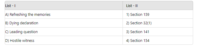 Indian Evidence Act, 1872 matches with the corresponding concepts from List-I, as explained below: