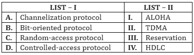 · Match: II. TDMA because TDMA is a classic example of a channelization protocol.