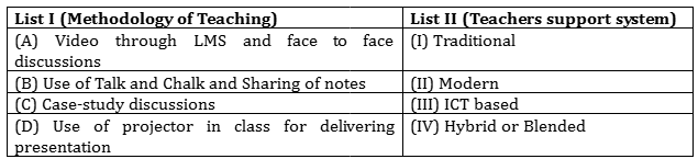 · (C)-(II): Case-study discussions are considered a modern teaching methodology, promoting critical thinking and interaction.