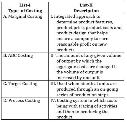 · Matches IV: "Costing system in which costs begin with tracing of activities and then to producing the product."