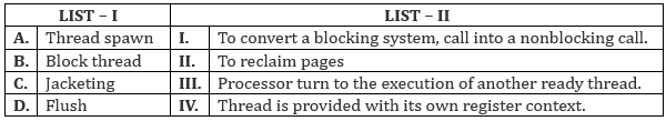 B. Block thread - III. Processor turn to the execution of another ready thread.