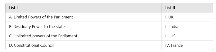 A-II: The limited powers of the Parliament is a concept associated with India (residuary powers belong to states).