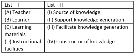 The teacher facilitates the generation of knowledge by guiding students through the learning process. Teachers provide support, resources, and encouragement for students to generate knowledge through active participation, problem-solving, and discussions. - (B) Learner → (IV) Constructor of knowledge:
