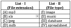 3. .jpeg (Image): JPEG (Joint Photographic Experts Group) is a commonly used format for digital images, particularly in photography and web use. It uses lossy compression to reduce file size while maintaining visual quality, though some quality may be lost in the compression process. While .jpeg is indeed an image format, it is not associated with a spreadsheet, database, or music, which is why it does not match the other options in the list.
