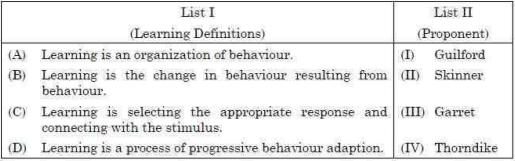 (A)-(III): "Learning is an organization of behaviour" is attributed to Garret.