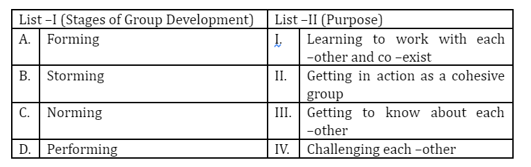 performing. Each stage has a specific purpose and function in group development. Let's explain the stages and the correct matches: