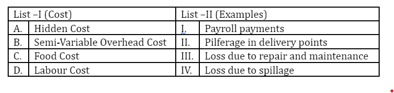 (C) Food Cost → (II) Pilferage in delivery points