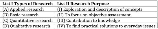 (A) Applied Research (IV): Applied research aims at solving practical, real-world problems. It focuses on finding solutions to everyday issues and has immediate applications.