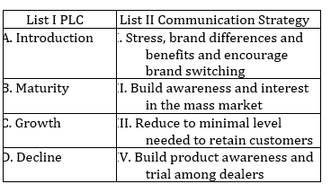 | List-I (Stages of Product Life Cycle) |