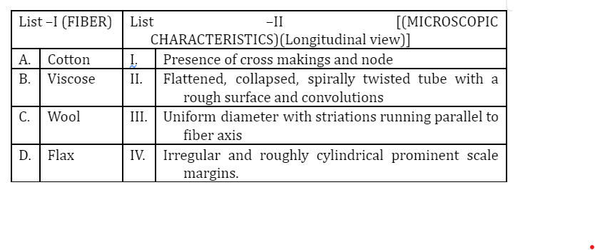 A. Cotton → II. Flattened, collapsed, spirally twisted tube with a rough surface and convolutions