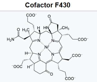 F430 is the cofactor (sometimes called the coenzyme) of the enzyme methyl coenzyme M reductase (MCR).