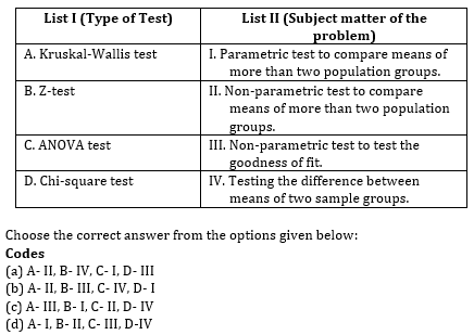 Therefore, the correct matching of List I with List II is: A- II, B- IV, C- I, D- III, which corresponds to option (a).
