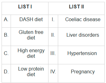 · B - I(Gluten-free diet): A gluten-free diet is required for individuals with coeliac disease, a condition where gluten causes damage to the small intestine.